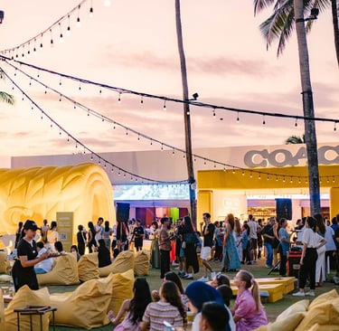 Coach, the quintessential New York accessory house founded in 1941, has long championed accessible luxury with its signature blend of craftsmanship and contemporary flair. For their 2024 Indonesian campaign, the brand channeled the expressive essence of the Tabby bag, a 1970s archive icon reinterpreted in quilted walnut yellow and vibrant hues, into a beachside pop-up that captured hearts across the archipelago. BDP+Partners stepped in as the perfect collaborator, our multicultural expertise ideal for merging Coach's metropolitan vibe with Bali's relaxed paradise.
