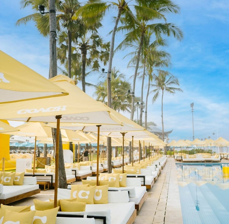 Orchestrated Execution (The "How" and "Where"): We operated discreetly to harmonize the rollout, teaming with design and event specialists to match every aspect to Coach's standards of approachable sophistication. From erecting beach umbrellas and bean bags infused with Tabby motifs to organizing the May 30 to June 16 run (open daily from 10 a.m. to 10 p.m.), our input guaranteed smooth operations. We facilitated celebrity attendance, including stars like Syifa Hadju, Bryan Domani, and Ian Hugen, blending Jakarta influencers with Bali locals for a buzzing launch that captured New York's pulse in a tropical setting.