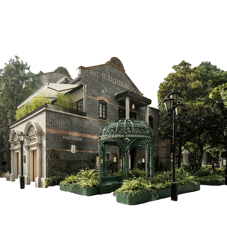 In March 2026, in Shanghai’s historic Xintiandi district, Boucheron officially inaugurated its first flagship in China, its third worldwide after 26 Place Vendôme in Paris and Ginza in Tokyo. More than a new boutique, the 278 m² space builds a bridge between cultures – between the House’s Parisian roots and the city’s layered identity. Its opening was celebrated in kind: a journey from Place Vendôme to Shanghai. This marks the second partnership between BDP+Partners and the Kering Group, specifically with Boucheron. The first collaboration was for the Boucheron x Regent Shanghai Afternoon Tea Campaign in 2024, tied to the Jardin d’hiver Flower Garden pop-up.