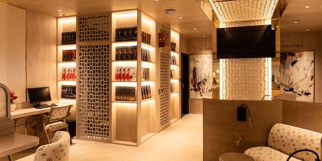 Branded Environment: Every aesthetic choice reinforces the Vietnam Airlines brand identity. The elegant space, with its sophisticated color palette and premium furnishings, acts as a physical brand ambassador, communicating quality and attention to detail before a single word is spoken.