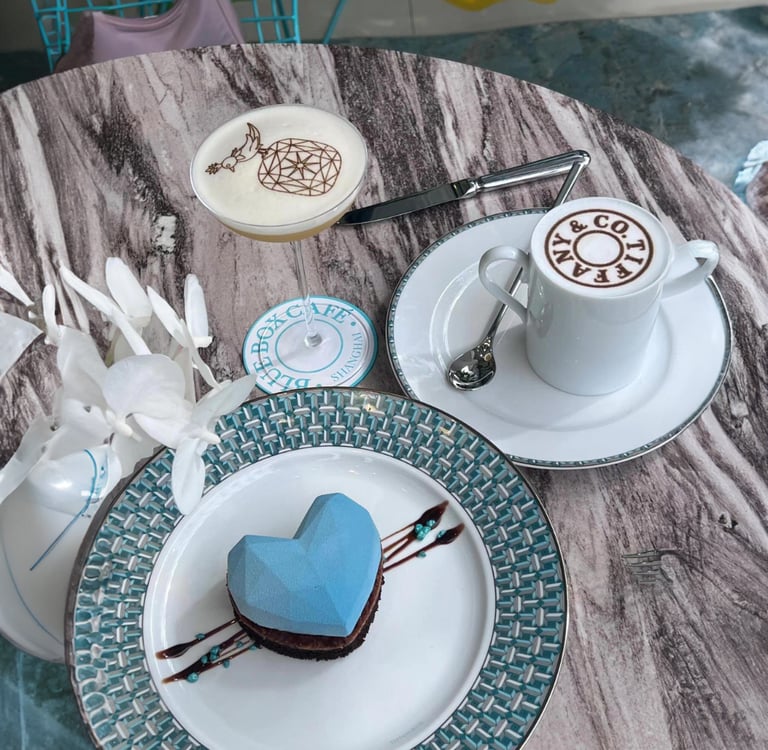 Curated Elevation (The "Wow"): Our standout contribution was the smooth integration of the EVEBOT Coffee Printer as a digital marvel, transforming every latte into a personalized Tiffany masterpiece with edible monograms, diamond patterns, or holiday snowflakes rendered in real time. This innovative link embedded the printer into Tiffany & Co.'s customer service DNA, turning simple refreshments into intimate, multisensory tributes that reinforce boundless loyalty and delight. Imagine a guest sipping a cappuccino topped with their initials in shimmering blue icing, or a snowflake motif mirroring the café's crystal chandeliers, each creation a nod to Tiffany's craftsmanship. We customized the EVEBOT's software to align with the brand's aesthetic, ensuring prints were precise, hygienic, and eco-friendly. This elevation wasn't gimmicky; it was a thoughtful bridge between technology and tradition, boosting social media shares by an estimated 300% during the launch week.