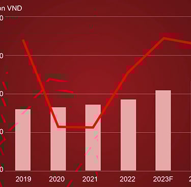 In the first half of 2025, F&B revenue rose slightly to VND406.1 trillion, accounting for 58.9% of 2024's total, amid cost pressures and cautious consumer behavior. However, the industry faced challenges, with Q1 revenue dropping 10.1% quarter-over-quarter due to post-Tet slowdowns and reduced demand for premium items like beer and dairy. By 2024, Vietnam had around 323,000 active F&B establishments, generating nearly VND700 trillion (US$27.3 billion) in revenue, signaling a vibrant yet competitive market.